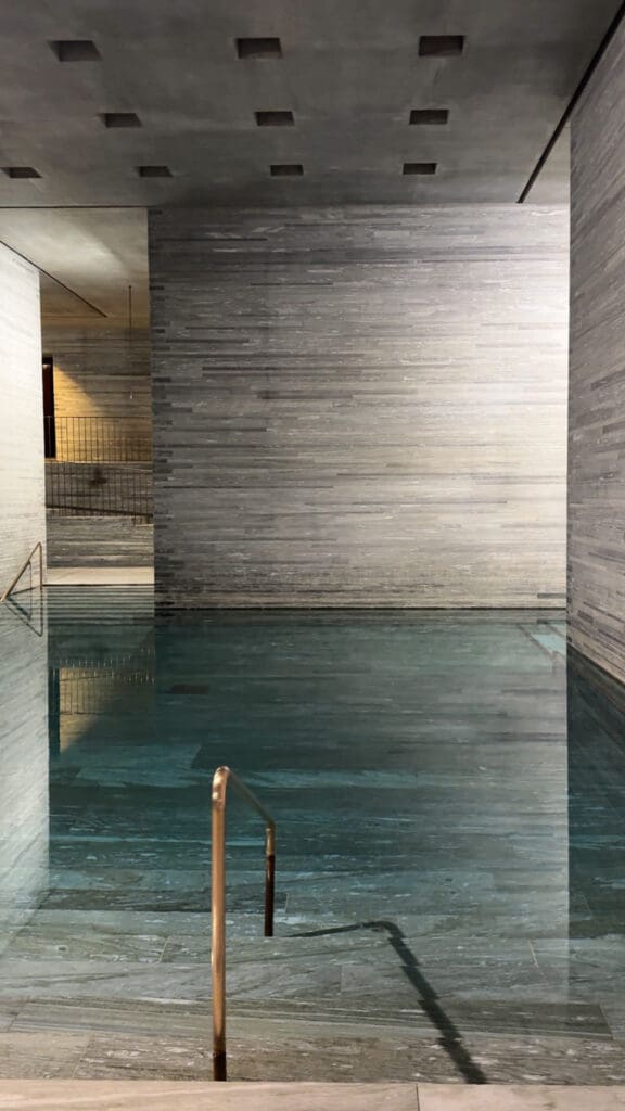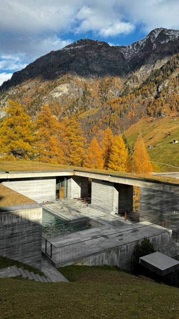 We arrived in the late afternoon. Golden light spilling across the stone façade designed with that signature Peter Zumthor architecture that Vals is known for.