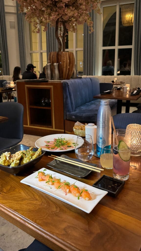In the evening, I dined at Ke-uH Acqualina, a modern Japanese restaurant with a lively yet elegant atmosphere.