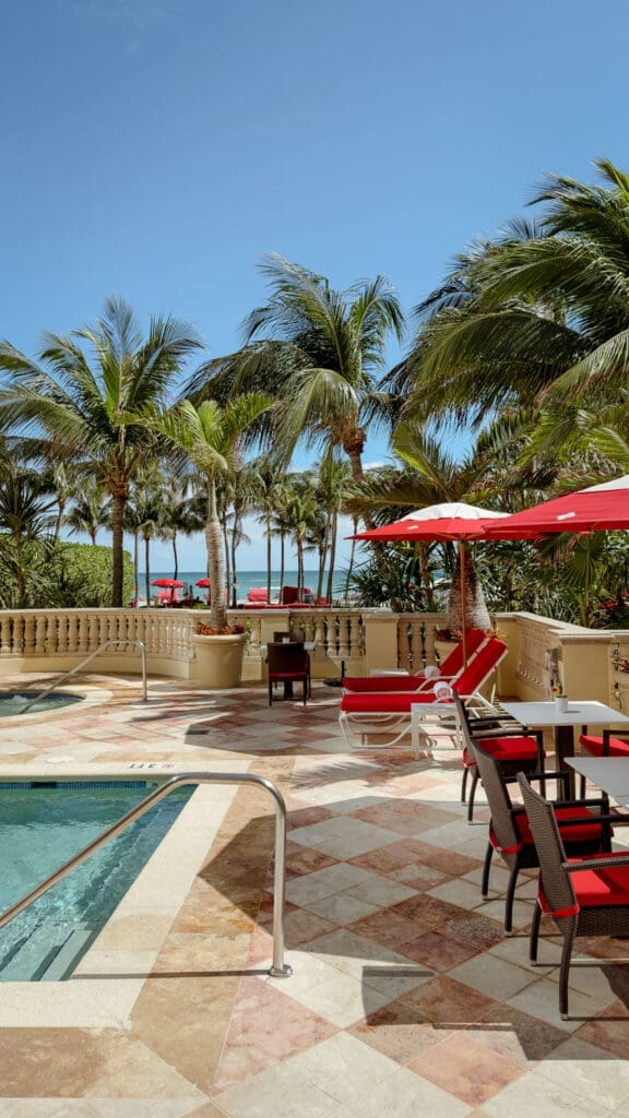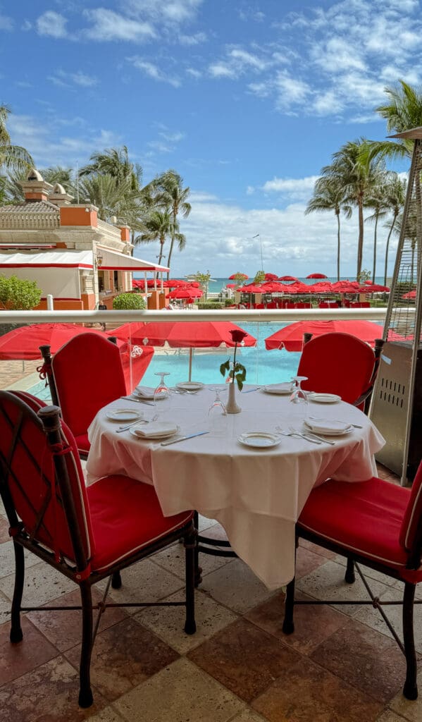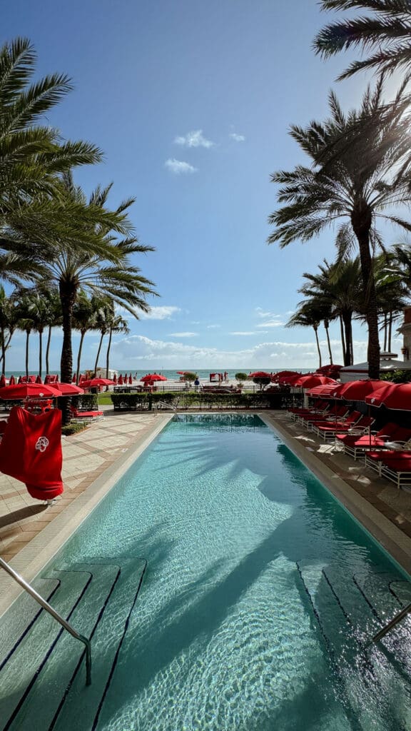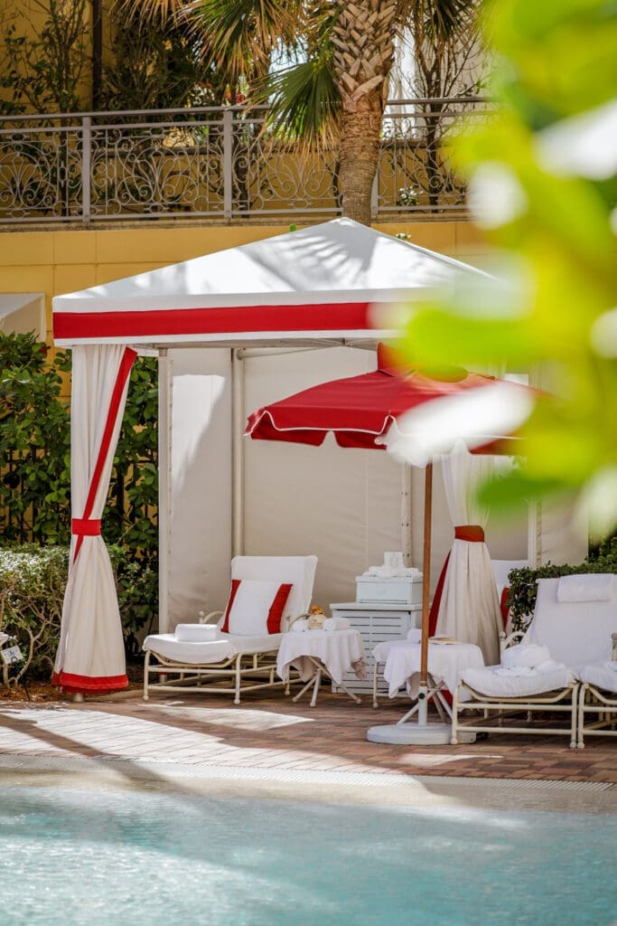 The iconic red umbrellas and loungers add such a chic, signature touch… everything feels timeless yet vibrant.