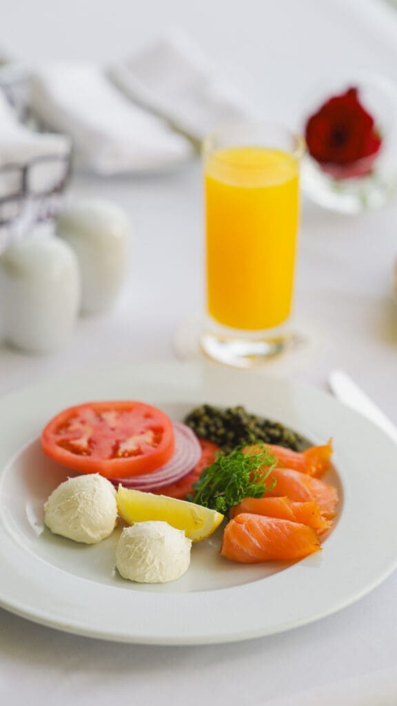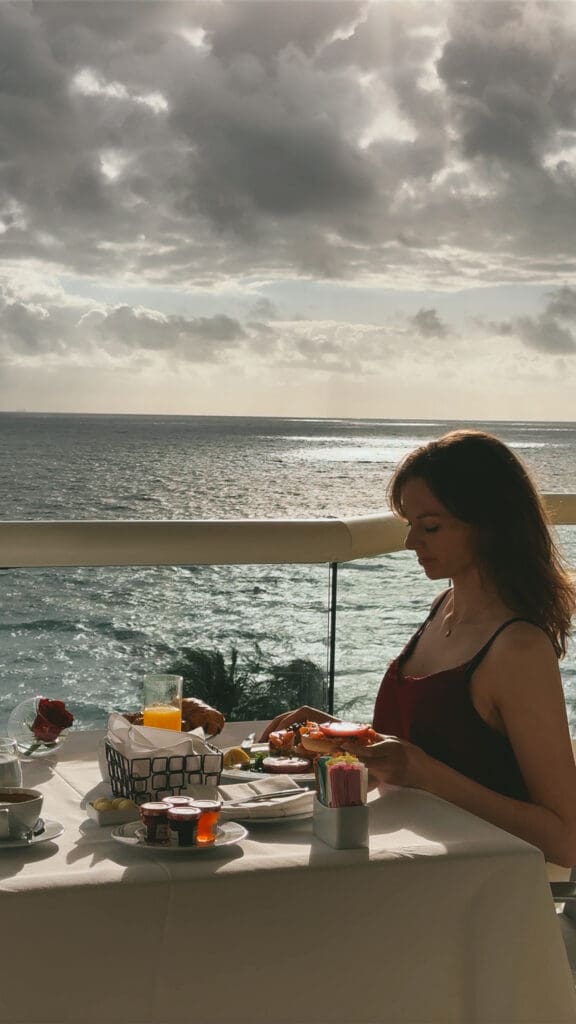 The next morning, I had breakfast on my balcony, watching the waves shimmer in the morning light. Fresh fruit, smoked salmon, and a hot cappuccino.