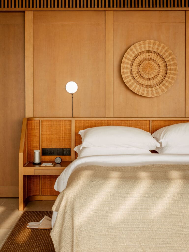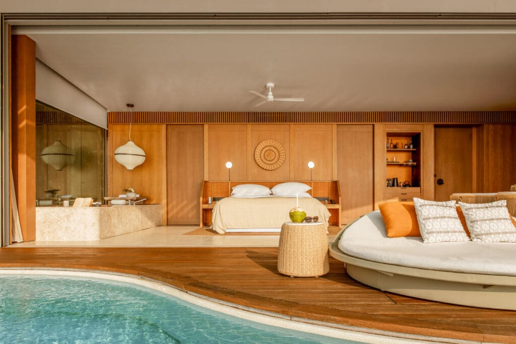 yet softened by natural materials, warm woods, and the constant presence of the lagoon.